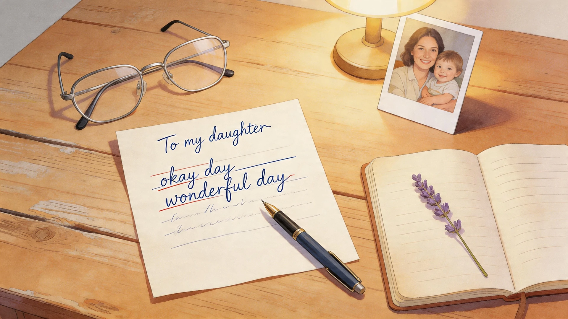 Focus on three things: your pride in who she’s become, your love that never changes, and specific qualities you admire about her. Mention a memory if it feels right, and always let her know you’re there for her. Keep it genuine—she’ll know if you’re just copying something generic.
